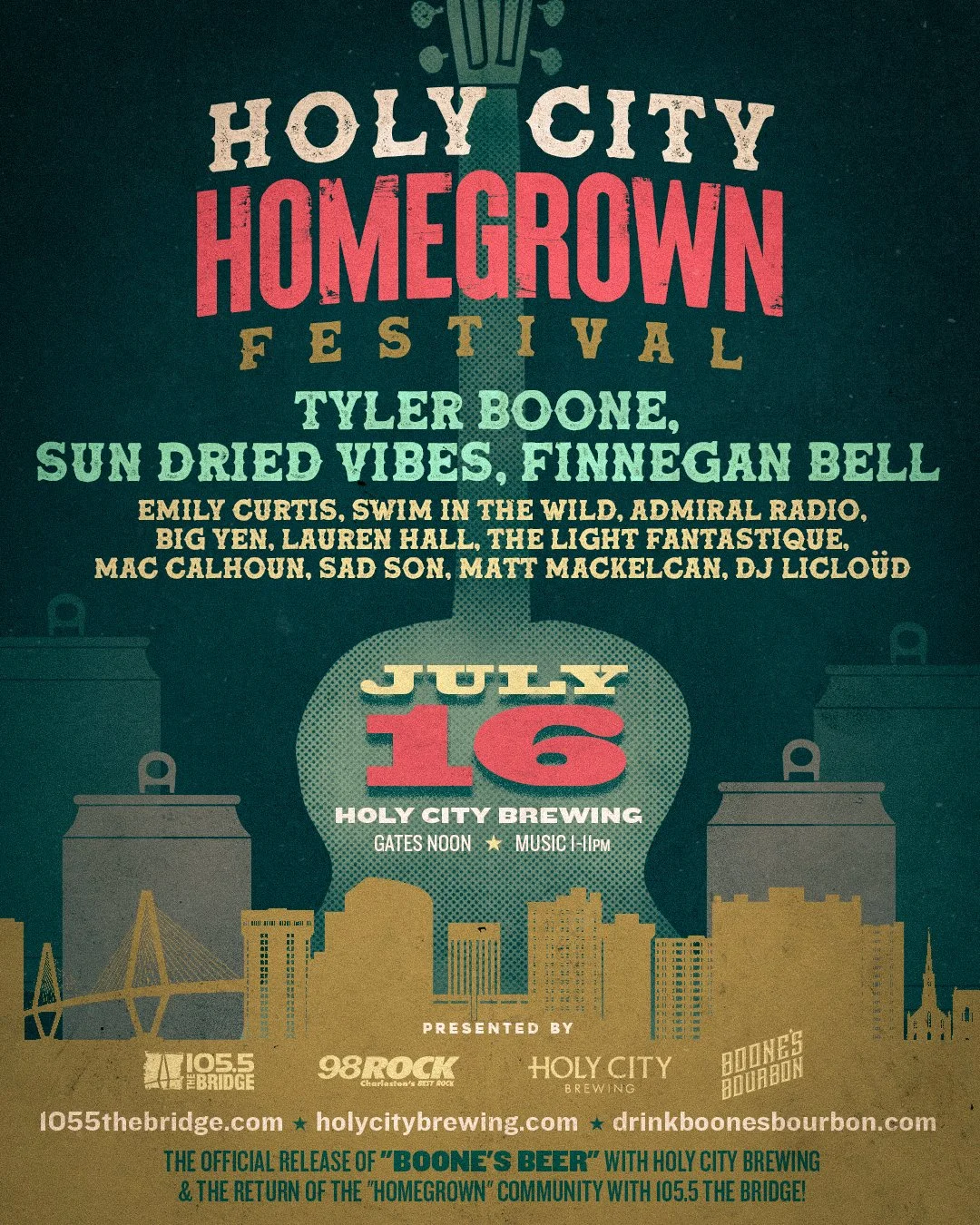Holy City Brewery, “Homegrown” Boone’s Bourbon & 105.5 The Bridge proudly present “Homegrown” Holy City Beer festival on July 16! Tickets are now on sale!